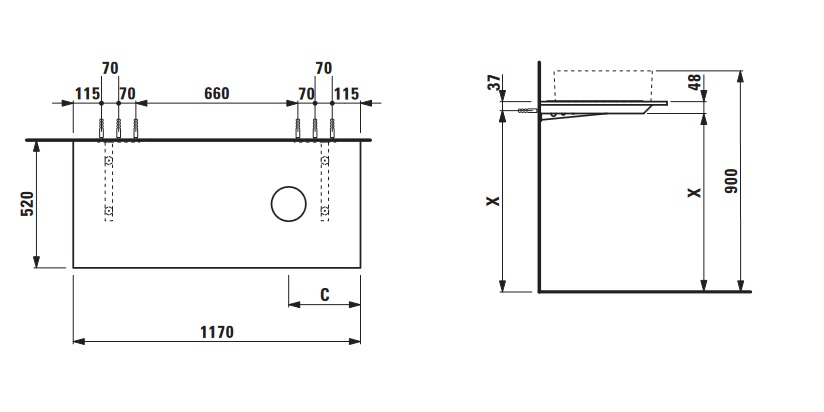 Столешница Laufen Space 117х52 см с вырезом справа HPL темный вяз