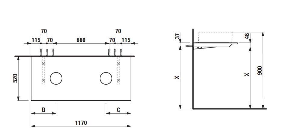 Столешница Laufen Space 117х52 см с вырезом слева и справа HPL темный вяз H4110041601031