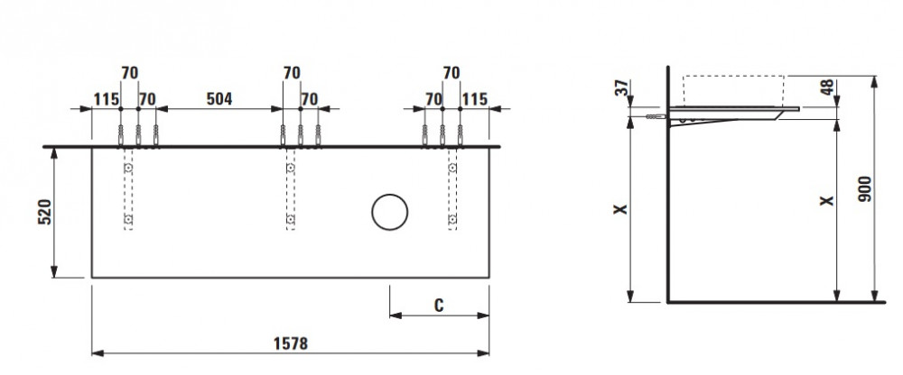 Столешница Laufen Space 157,8х52 см с вырезом справа HPL белый матовый
