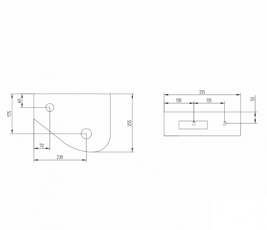 1) Столешница под раковину AеT C115 Top Hand подвесная с держателем полотенец левая белый