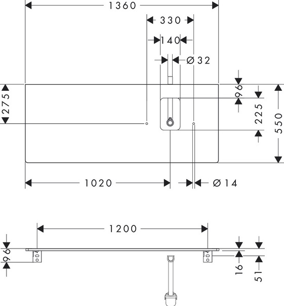 Столешница под раковину Hansgrohe Xelu Q 136х55 вырез справа ДСП белый глянцевый 54124050