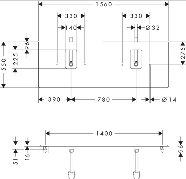 Столешница под раковину Hansgrohe Xelu Q 156х55 с 2 вырезами ДСП темный орех 54126630