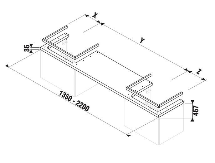 1) Столешница под раковину Jika Cubito 135-220 см с двумя вырезами венге