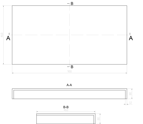 1) Столешница под раковину каменная Volle Solid surface 900х460х80 мм