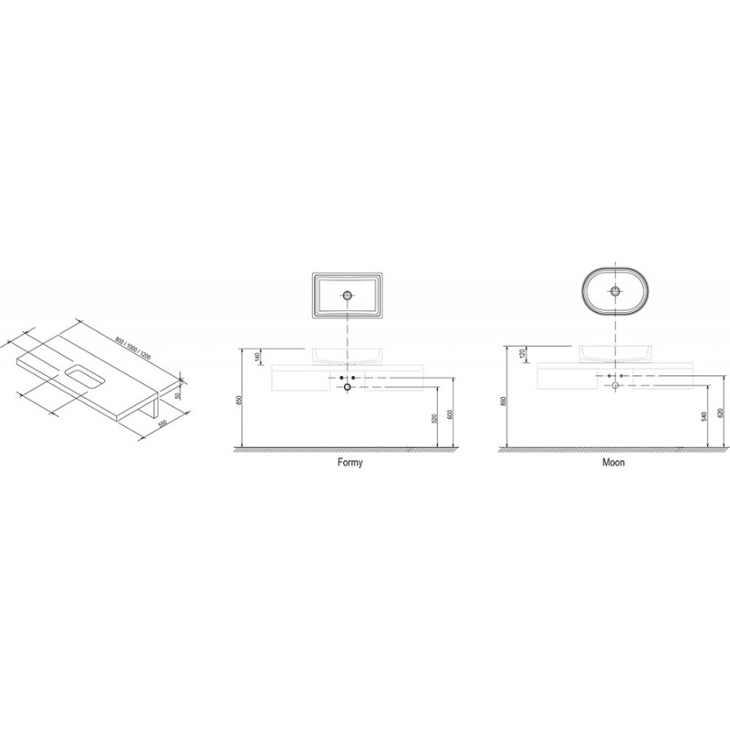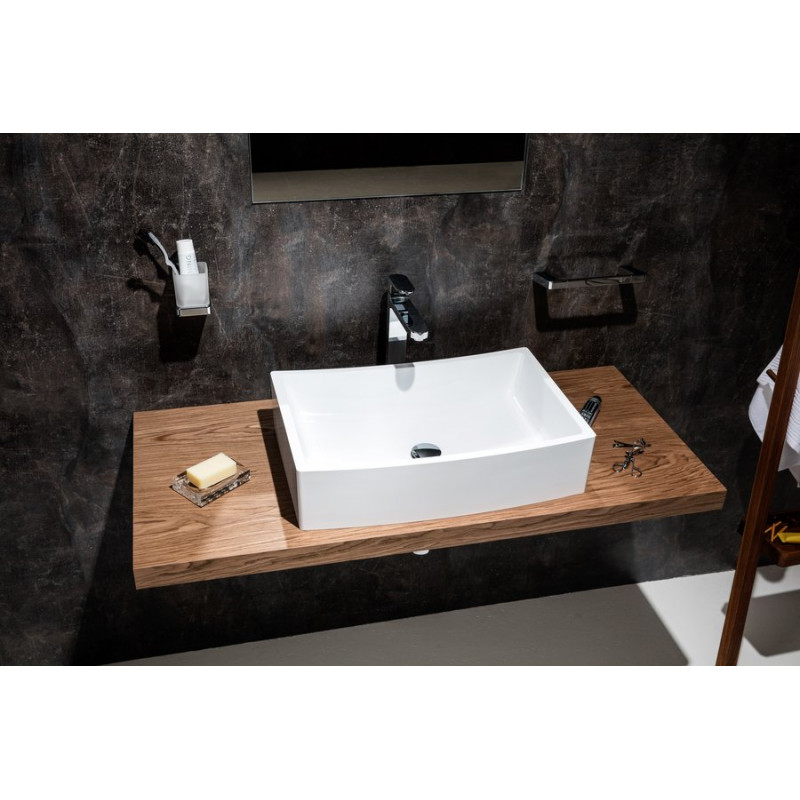 Исключительная по форме столешница, прежде всего, предназначена под умывальники Formy. Имеет специальную пропитку длямаксимальной устойчивости к влажной среде, представленав трех цветах и трех материалах. Столешница предоставляет много свободного места для вещей.