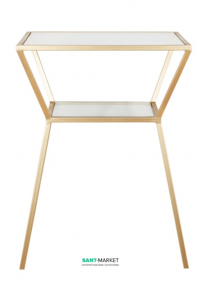 Стильный столик на высоких ножках из металлического каркаса золотого цвета с двумя стеклянными столешницами. Очень удобный и элегантный элемент интерьера, на который можно поставить вазу с цветами, журналы, книги. Столик идеален для гостиной в стиле fashion, эклектика, современная классика и других. Металлические детали обработаны порошковой покраской методом напыления. Дополнительно покрыты декоративным финишем золотого цвета . Эта технология, разработанная на нашем производстве, обеспечивает высокое качество поверхности металла и способна придать красивый оттенок золотому покрытию.
