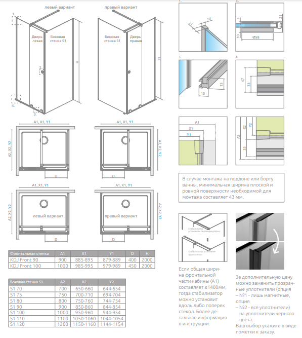 - Необходима комбинация: с неподвижным элементом душевой двери Front wall 510 10110510-01-01.
