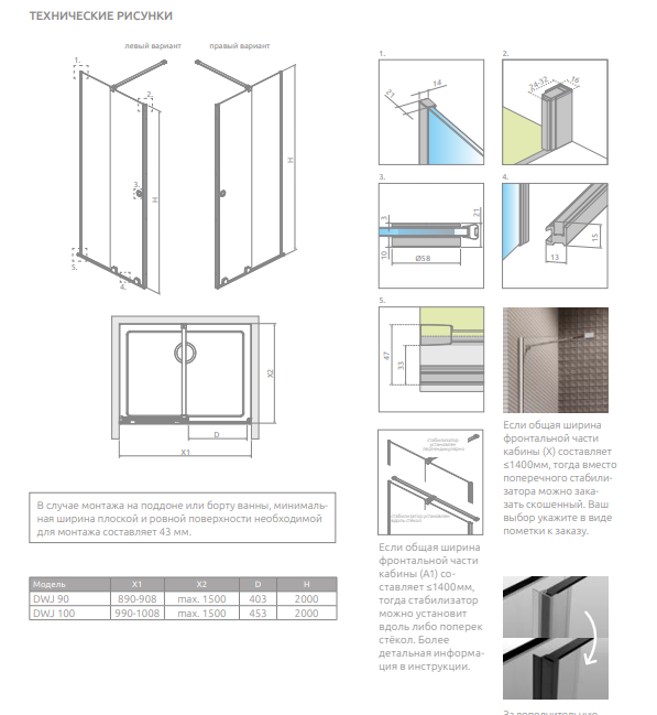 В заказе надо указать 2 номера артикулов: створки двери и неподвижного пристенка.