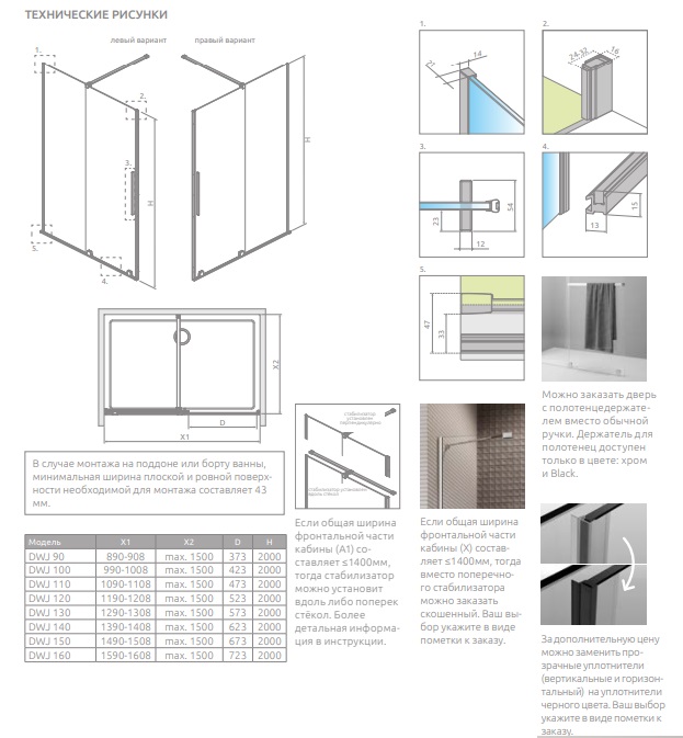 В заказе надо указать 2 номера артикулов: створки двери и неподвижного пристенка.