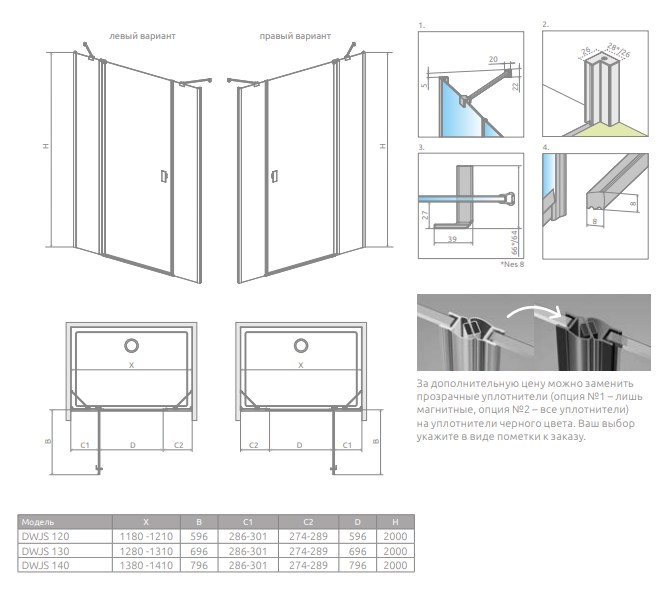 В заказе надо указать 2 номера артикулов: створки двери и комплекта неподвижных элементов.