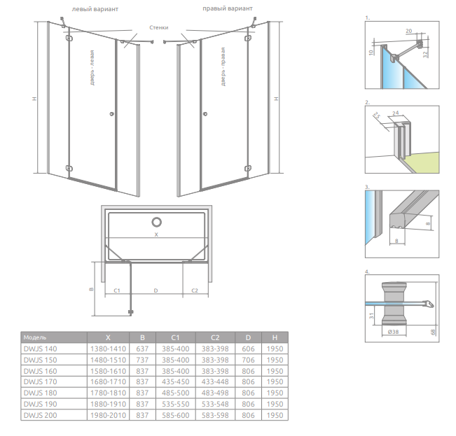 - Возможность монтажа без планки порога. По молчанию покупатель получает все комплектующие необходимые для монтажа так с планкой порога, как и без ней. Более подробная информация в инструкции по установке.