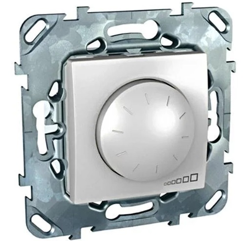 1) Светорегулятор для ламп накаливания и галогенных Schneider Electric Unica поворотно-нажимной алюминий