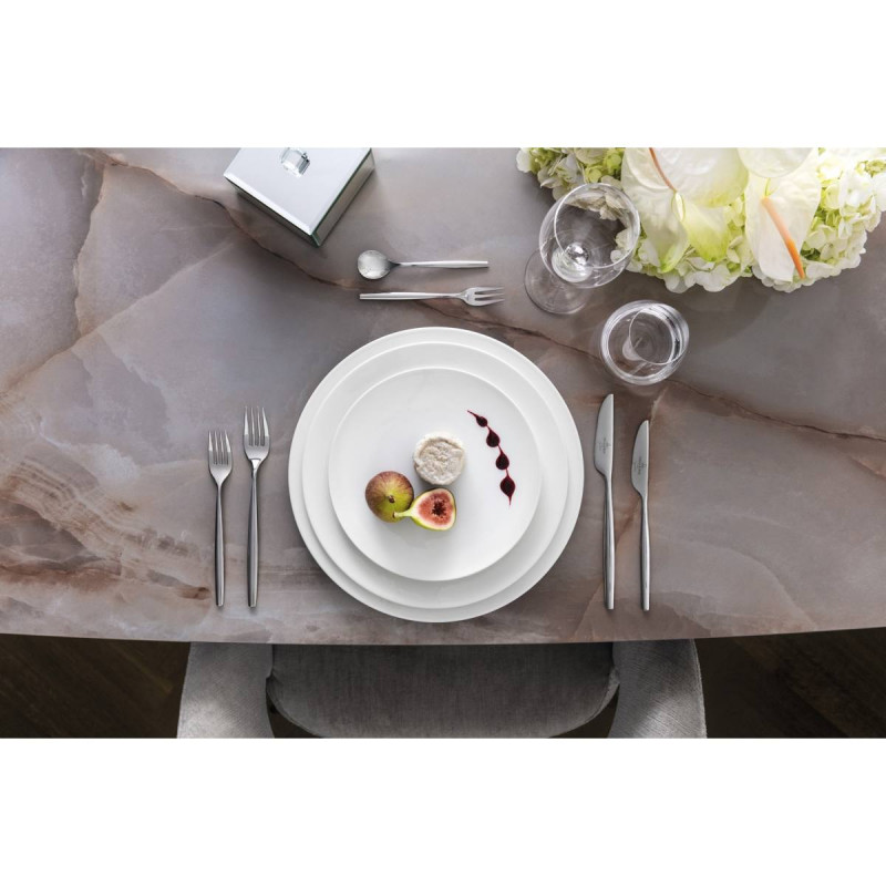 Роскошная коллекция Villeroy & Boch MetroChic Blanc изготавливается из блестящего белого костяного фарфора - благороднейшего из фарфора. Он заслуженно славится превосходной прочностью, элегантным внешним видом и исключительной тонкостью. Регулярное чередование круглых и квадратных форм, напоминающих стиль ар-деко, делает посуду по-настоящему привлекательной, что особенно понравится ценителям простоты.
