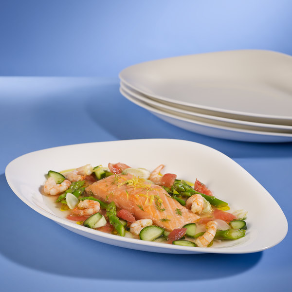 Эта белая фарфоровая тарелка размером 14 x 9 3/4 дюйма от Villeroy & Boch Dune, вдохновленная природой, станет прекрасным дополнением вашего изысканного ресторана. Этот предмет свежего белого цвета является профессиональным и привлекательным решением для сервировки вашего ресторана, отеля или обеденного зала загородного клуба. Его простой силуэт и цвет создают контраст, позволяя вашим ярким свежим блюдам стать центральным элементом любой обеденной зоны. Используйте эту тарелку для подачи основных блюд или общих закусок. Это изделие имеет традиционную форму, оно создано, чтобы добавить визуального интереса к вашей настольной презентации. Подавайте его отдельно или сочетайте это изделие с остальной частью коллекции Dune для привлекательной и профессиональной презентации.