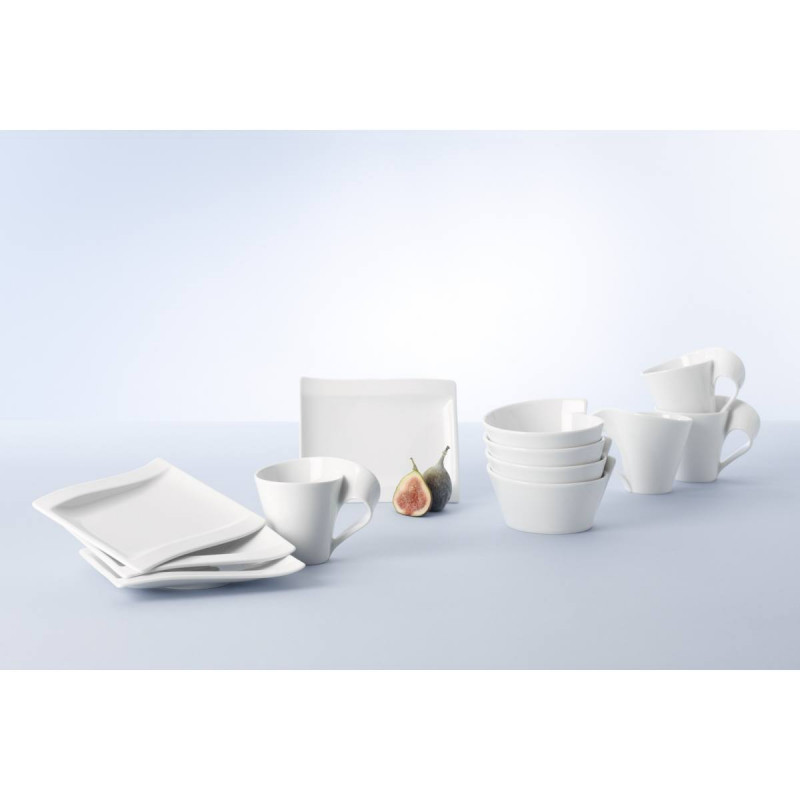 Элегантная посуда NewWave белоснежного цвета поражает необычным дизайном, оказывающим сильное эмоциональное воздействие. Четкость облика, однако, оставляет место для личной фантазии при сервировке стола. Этот декор уже был отмечен как «Тренд года в дизайне посуды» и давно стал настоящим бестселлером. Позвольте себе восхититься новой формой, которая полностью изменит ваше представление о посуде. Геометрические формы, такие как квадрат, прямоугольник и треугольник, в коллекции NewWave выступают в комбинации с оригинальными изогнутыми элементами, представляя собой пример удачного воплощения дизайнерских идей в мире столовой посуды.