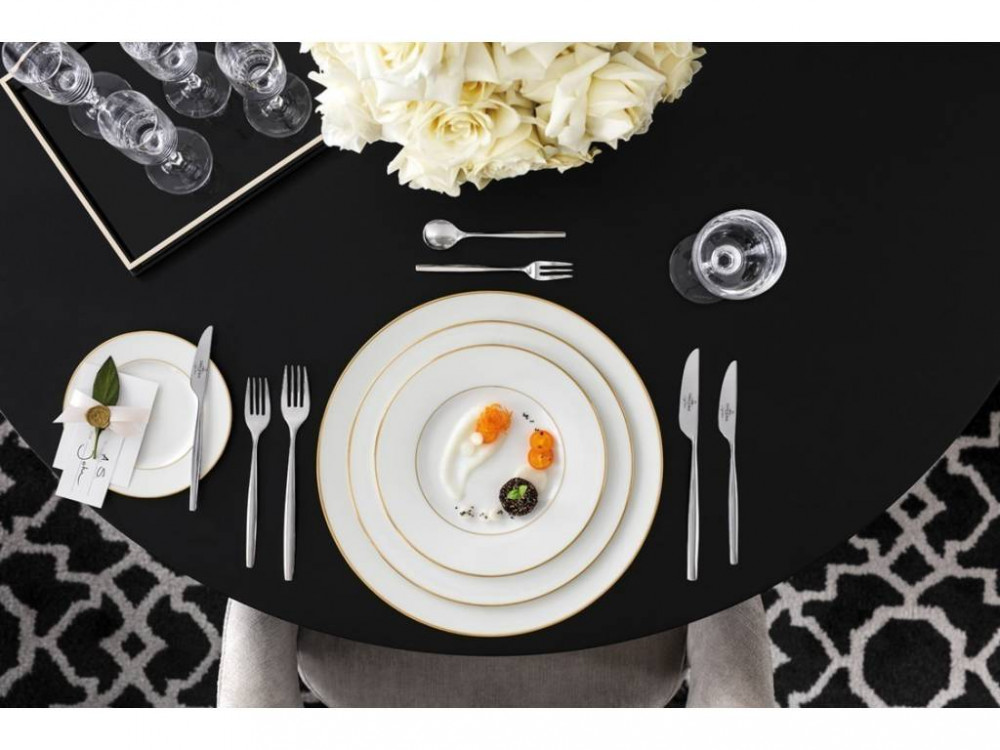 Anmut Gold очарует вас элегантностью белого костяного фарфора, украшенные тонкой линией 20 - каратного золота. Он порадует ценителей роскоши или изысканного минимализма 50-х годов, в котором также черпает вдохновение. Контраст белого фарфора и золота подчеркивает вневременность этой коллекции и придает ей благородную элегантность. Это отличный выбор для тех, кто любит сочетание качества и стиля. Инновационная технология нанесения глазури «Inglaze Gold» позволяет эксклюзивному золотому декору буквально пропитаться глазурью в процессе обжига, а прочная глазурь бережно защищает золотой декор, и вы можете без проблем мыть посуду в посудомоечной машине.