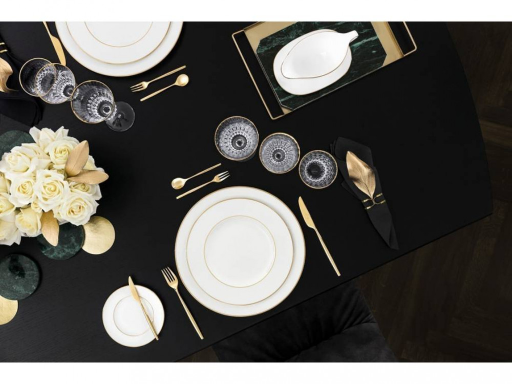 Anmut Gold очарует вас элегантностью белого костяного фарфора, украшенные тонкой линией 20 - каратного золота. Он порадует ценителей роскоши или изысканного минимализма 50-х годов, в котором также черпает вдохновение. Контраст белого фарфора и золота подчеркивает вневременность этой коллекции и придает ей благородную элегантность. Это отличный выбор для тех, кто любит сочетание качества и стиля. Инновационная технология нанесения глазури «Inglaze Gold» позволяет эксклюзивному золотому декору буквально пропитаться глазурью в процессе обжига, а прочная глазурь бережно защищает золотой декор, и вы можете без проблем мыть посуду в посудомоечной машине.