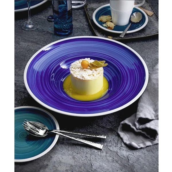 Тарелка Villeroy & Boch Artesano Atlantic Blue в атлантическом синем цвете, несомненно, создаст утонченный и незабываемый образ столовой посуды. Подавайте пикантные закуски или общие закуски и десерты на этой красивой тарелке. Её простой силуэт контрастирует с цветной поверхностью, что делает эту тарелку центром внимания любого стола. Подавайте её отдельно или сочетайте это изделие с другими цветами и формами из коллекции Artesano Ocean для привлекательной и профессиональной презентации!