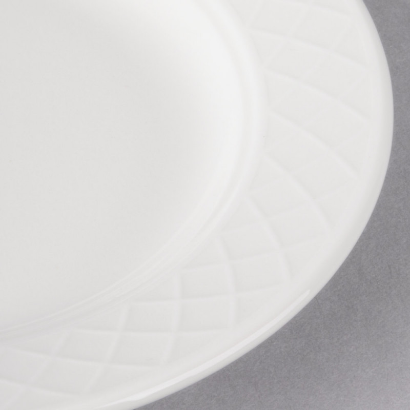 Благодаря свежему белому цвету, эта тарелка представляет собой профессиональное и привлекательное решение для сервировки в вашем ресторане, отеле или загородном клубе. Его простой силуэт и цвет создают контраст, позволяя вашим красочным свежим блюдам стать центральным элементом любой обеденной зоны. Используйте эту тарелку, чтобы подавать небольшие салаты, гарниры или выпечку. Эта тарелка имеет привлекательный перекрестный узор, созданный для того, чтобы Обеспечьте тонкую, элегантную детализацию, добавив визуального интереса к вашей настольной презентации. Подавайте ее отдельно или сочетайте ее с остальной частью коллекции Bella для привлекательной и профессиональной презентации.