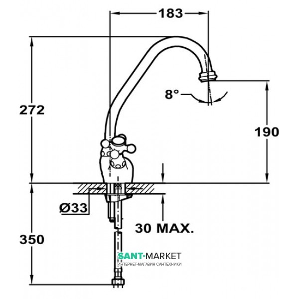 Смеситель для кухни TEKA 1820 Capricho L однорычажный ретростиль 56913881