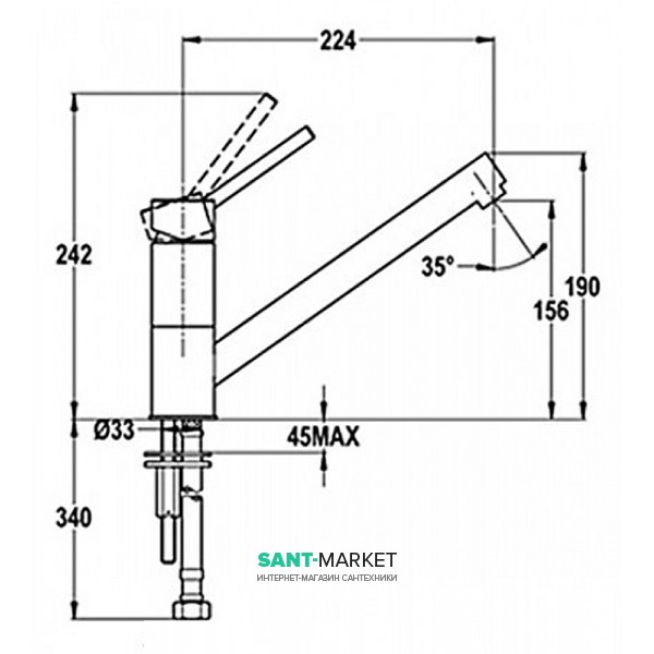 Смеситель для кухни Teka Aura L (AUK 913) однорычажный хром-топаз 509130216