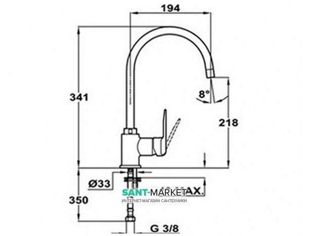 Смеситель для кухни Teka Inca H (IN 995) однорычажный хром-антрацит 53995121A