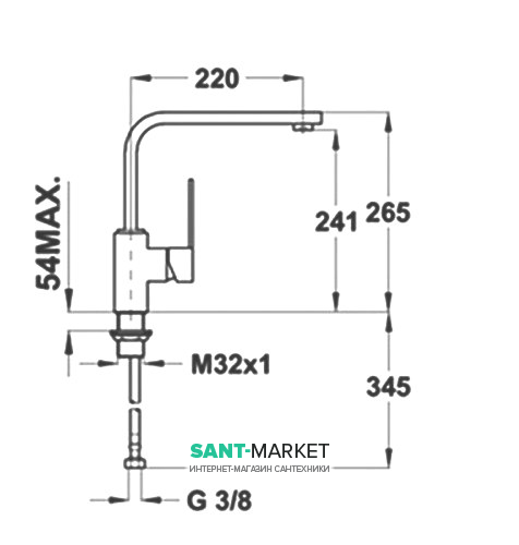 Смеситель для кухни Teka Inox H2 (INX 994) однорычажный из нержавеющей стали 749940710