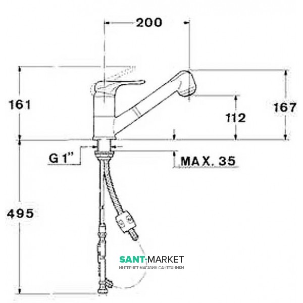Смеситель для кухни с выдвижной лейкой Teka MB2 LP однорычажный топаз-хром 40971802TB