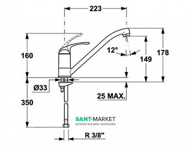 Смеситель для кухни Teka MT однорычажный топаз-хром 96911302TB