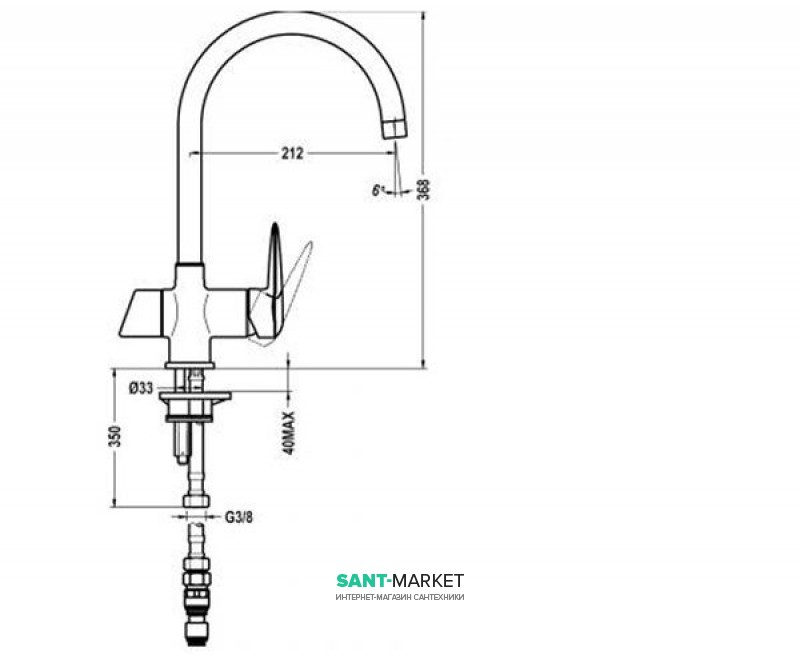 Смеситель для кухни Teka Pure (OS 200) однорычажный 182000210
