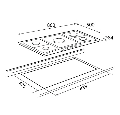 Размеры 8.4x86x50 см; Цвет: нержавеющая сталь; Электроподжиг: есть; Газ-контроль; Конфорок (шт): 5; Тип: независимая; Тип поверхности: газовая; Устройство: варочная поверхность.