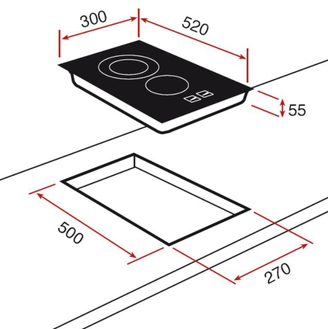 Газовая варочная поверхность. 2 электрические конфорки. Газ-контроль, автоподжиг. Габариты (ШхГ): 5.5x30x52 cм.