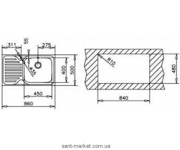Мойка для кухни прямоугольная TEKA CLASSIC MAX 1B 1D RHD крыло справа врезная нержавеющая сталь хром полированная 11119200