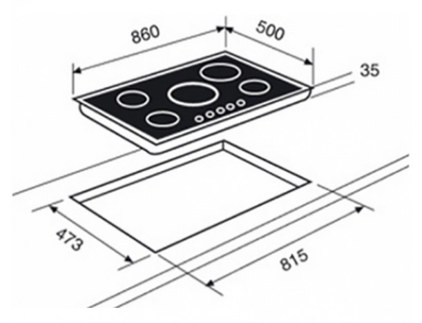 - Размеры для встраивания: 35х835х475 мм