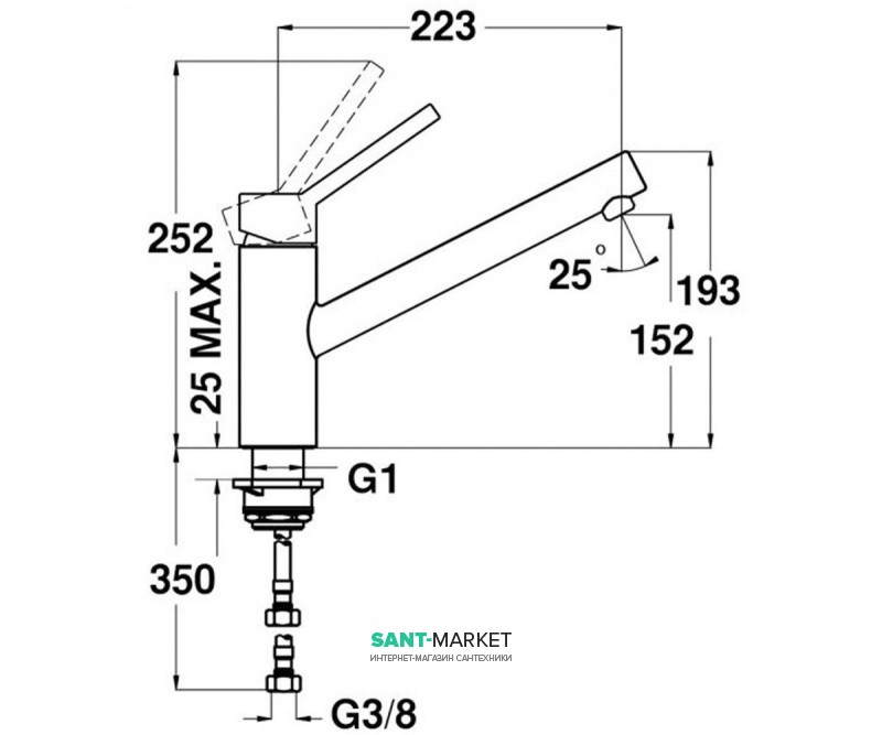 1) Смеситель для кухни Teka ARK 938 врезной однорычажный хром