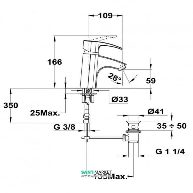 Смеситель для раковины однорычажный с донным клапаном Teka колекция Vita хром 24.342.02.10