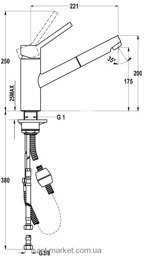 - комплектация выдвижным душем с двумя режимами работы (обычная струя, душ)