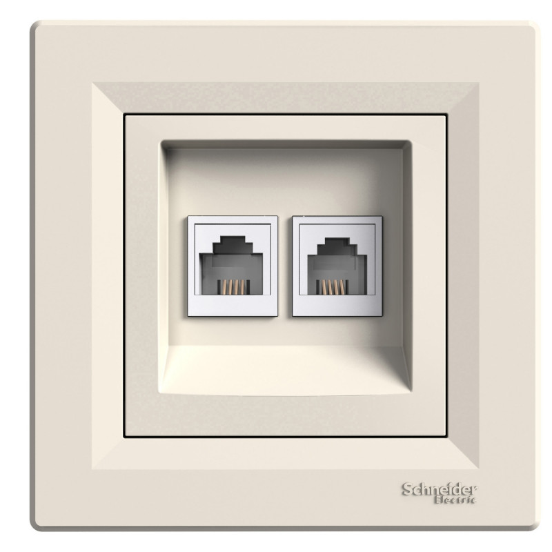 Телефонная розетка Schneider Electric Asfora RJ11 4 контакта двойная крем