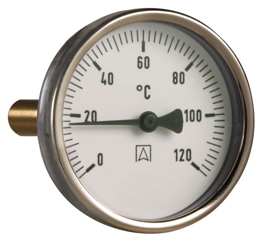 Биметаллический термометр BiTh. Предназначен для измерения температуры практически в любом типе установок. Он оснащен съемной гильзой. Оцинкованный металлический корпус.
