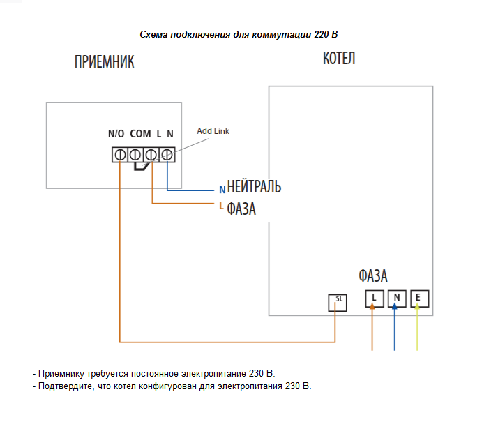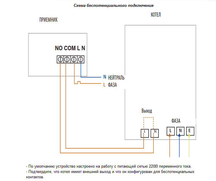- Приемник подключается электрической проводкой к управляемому устройству и управляет им в режиме ВКЛ./ВЫКЛ.,