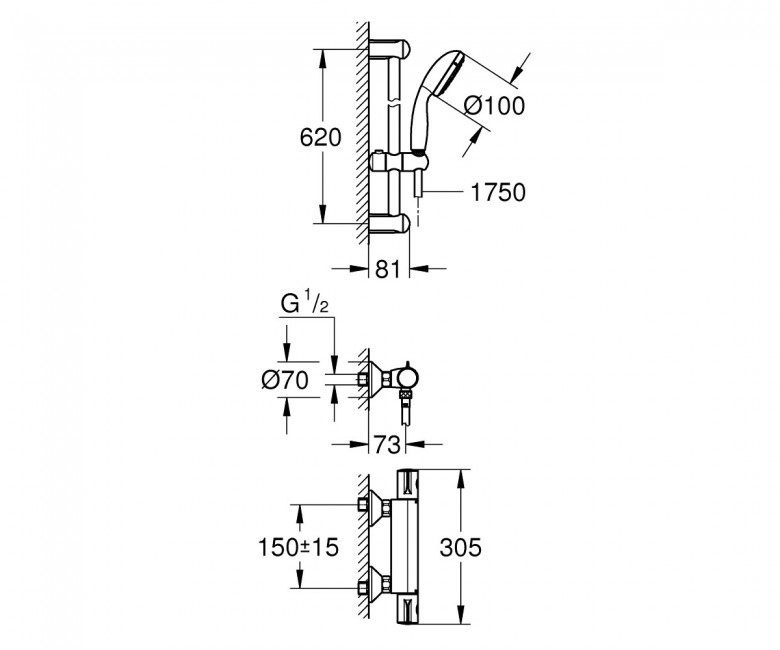 Термостат для душа Grohe Grohtherm 800 с душевым гарнитуром хром 34565001