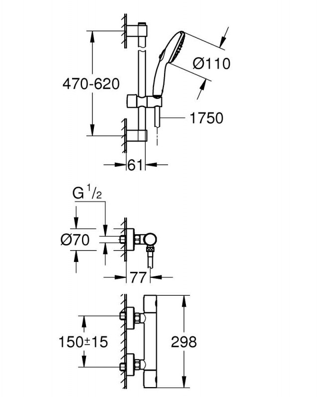 - Термостатический смеситель для душа Grohtherm 800 Cosmopolitan (34 765)