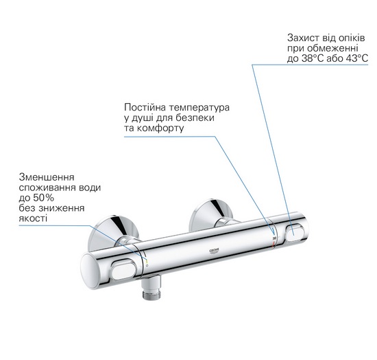 - Дополнительный ограничитель температуры GROHE SafeStop Plus на 43°C