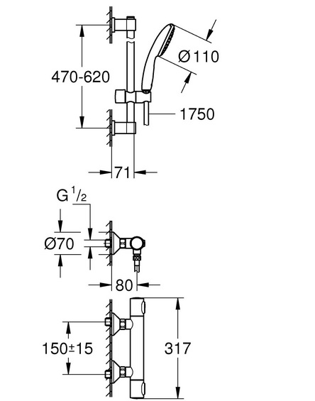 Термостат для душа Grohe QuickFix Precision Flow с душевым гарнитуром хром 34800001