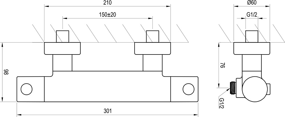 Термостат для душа Ravak Puri двухвентильный черный X070188