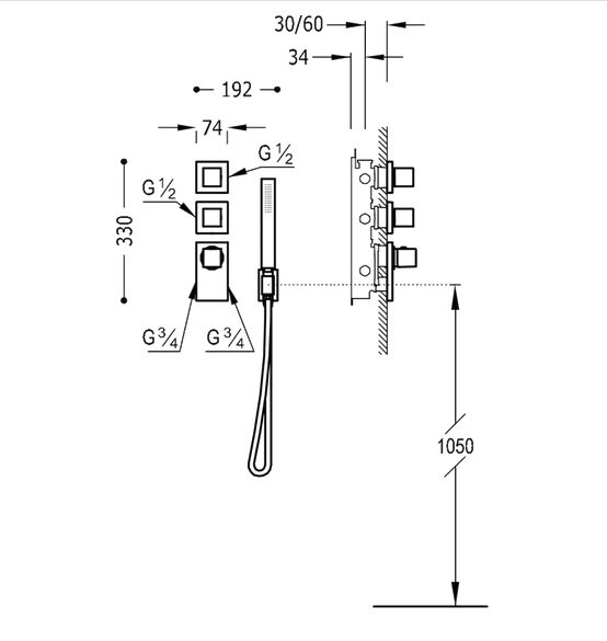 Термостат для душа Tres Block System colors 4 потребителя матовое золото 20625491OM