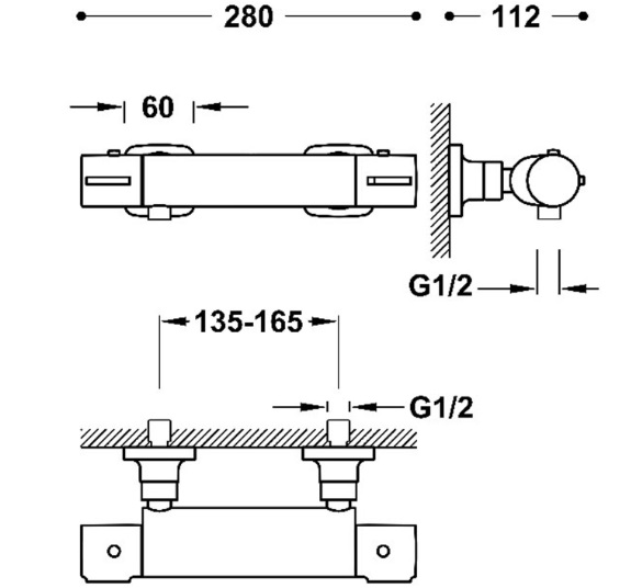 Термостат для душа Tres Canigo Plus двухвентильный с душевым набором хром