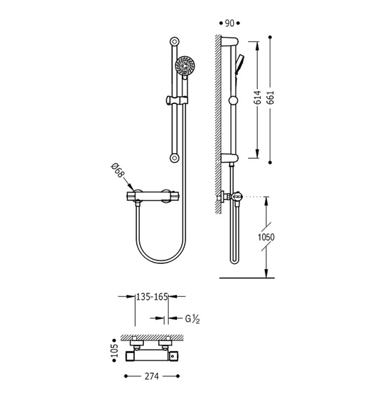 - Шланг для душа: 150 см, диаметр 14,5 мм с механизмом против скручивания