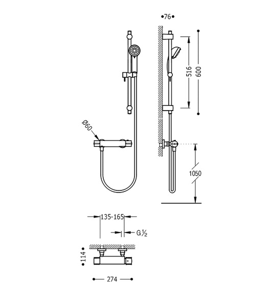 Термостат для душа Tres Lex-Tres с ручным душем хром 183395