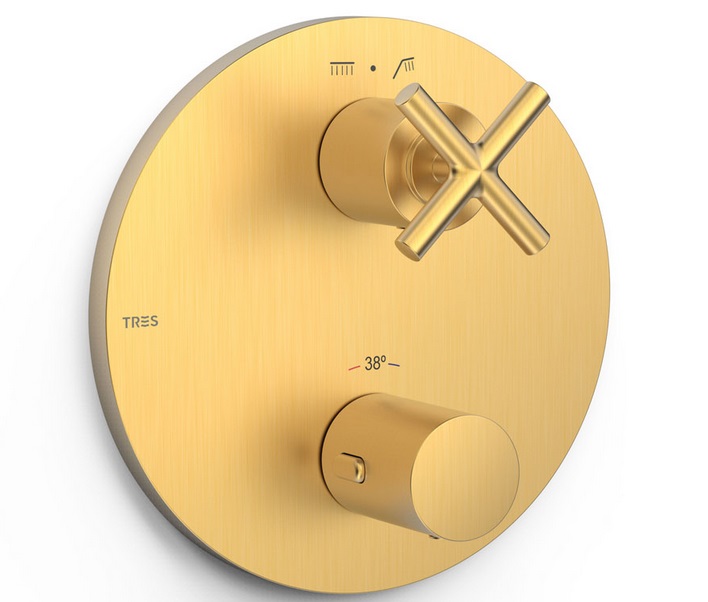 Термостат для душа Tres Mont Blanc встраиваемый одновентильный матовое золото 28325001OM